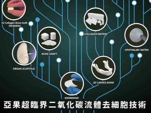 ACRO Biomedical has successfully developed a platform supercritical CO2 extraction technology to remove the cells, fats and non-collagenous proteins from pig skin, bone, cartilage, cornea, artery, nerve, ureter, and organs like heart, kidney, liver and pancreas, and used these decellularized tissues and organs for human tissue engineering. The skin and bone derived medical device biomaterials have received FDA approvals from Taiwan, US, Singapore, Vietnam, and Philippine. The pig cornea derived medical device is under human clinical trial in four medical centers in Taiwan.