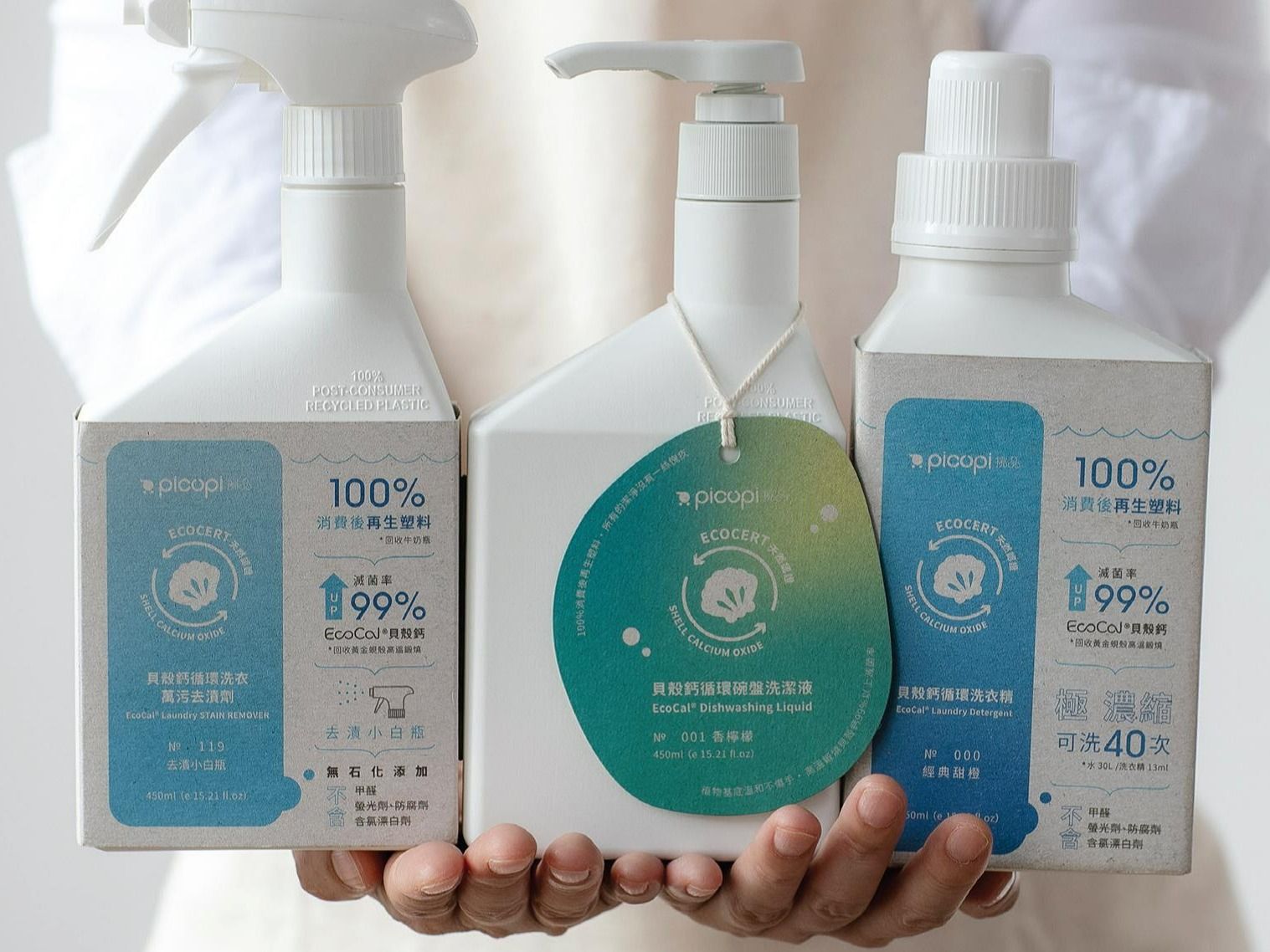 “Picupi” is a brand dedicated to developing healthy and safe additive-free household cleaning products. After the first launch of “EcoCal® Laundry Detergent” in 2022, picupi has launched many cleaning products with the natural bactericide “EcoCal®” as their main ingredient, including stain removers and dishwashing liquids. The core ingredients of these products come from recycled golden clam shells from Li Chuan Aquafarm in Hualien. They are calcined at high temperatures to become EcoCal® shell calcium powder, which has an efficient sterilization effect and does not contain chemical ingredients that are harmful to health.