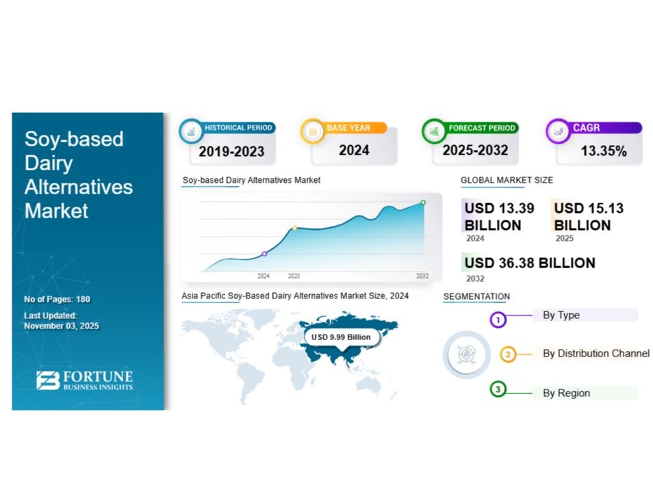 近年、世界的に植物由来食品への関心が高まり、大豆ベースの乳製品代替市場は急速な成長を遂げています。健康志向の高まり、乳糖不耐症の人口増加、サステナビリティへの意識向上が市場拡大を後押ししており、今後も非常に高い成長が見込まれています。グローバルでは2032年に向けて年平均成長率13%を超える力強い伸びが予測されており、特にアジア太平洋地域が中心となって市場拡大をリードすると考えられています。