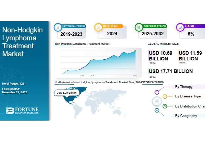 2024年の世界の非ホジキンリンパ腫治療市場は約 1069億米ドル と評価されており、2032年までに約 1771億米ドル に達する見込みです。この間、年平均成長率(CAGR)は 約6.2% と予測されています。