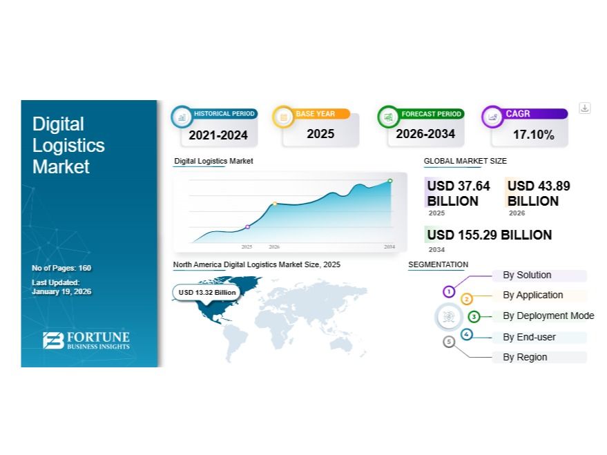 The global digital logistics market was valued at USD 37.64 billion in 2025.