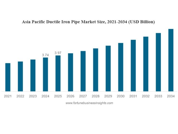 According to Fortune Business Insights, The global ductile iron pipe market size was valued at USD 8.48 billion in 2025. The market is projected to grow from USD 8.95 billion in 2026 to USD 14.03 billion by 2034 at a CAGR of 5.8% during the forecast period. Asia Pacific dominated the global ductile iron pipe market with a market share of 46.81% in 2025.
