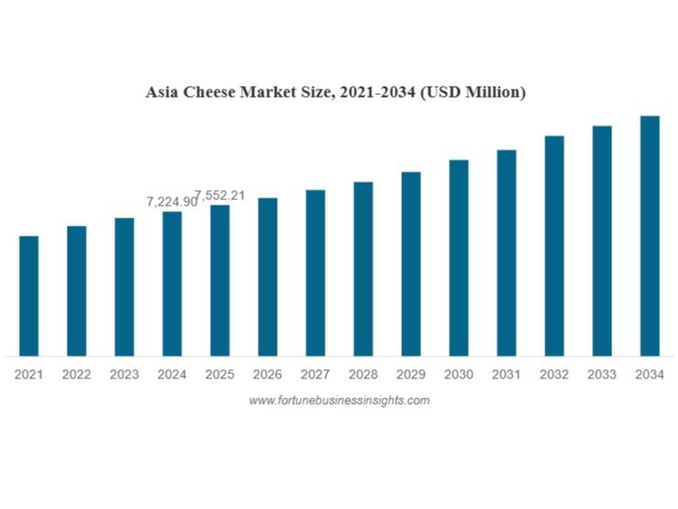 According to Fortune Business Insights, The Asia cheese market size was valued at USD 7,552.21 million in 2025. The market is projected to grow from USD 7,913.63 million in 2026 to USD 12,549.39 million by 2034, exhibiting a CAGR of 5.93% during the forecast period.