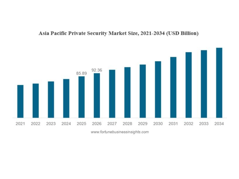 According to Fortune Business Insights, The global private security market size was valued at USD 261.70 billion in 2025 and is projected to grow from USD 277.85 billion in 2026 to USD 393.51 billion by 2034, exhibiting a CAGR of 5.10% during the forecast period. Asia Pacific dominated the private security market with a market share of 32.80% in 2025.