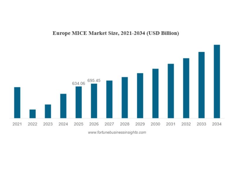 According to Fortune Business Insights, The global MICE market size was valued at USD 1,226.07 billion in 2025 and is projected to grow from USD 1,342.18 billion in 2026 to USD 3,062.55 billion by 2034, exhibiting a CAGR of 10.86% over the forecast period. Europe dominated the MICE market with a market share of 51.71% in 2025.