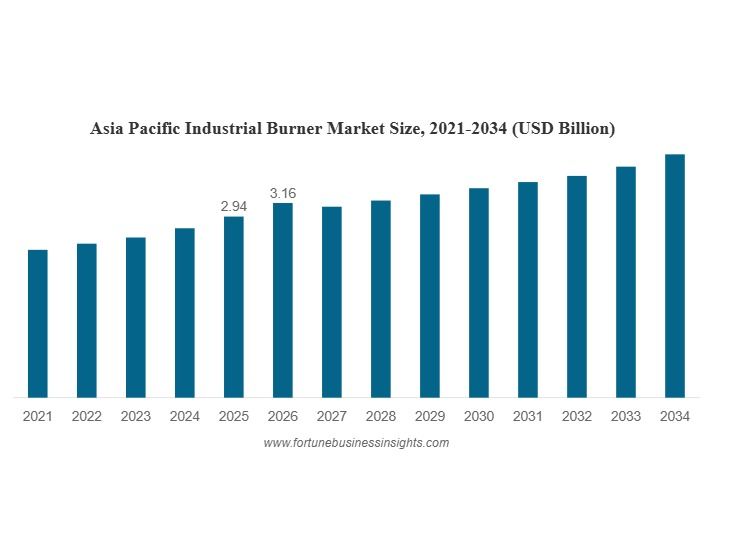 According to Fortune Business Insights, The global industrial burner market size was valued at USD 6.6 billion in 2025. The market is projected to grow from USD 7.01 billion in 2026 to USD 11.91 billion by 2034, exhibiting a CAGR of 6.85% during the forecast period. Asia Pacific dominated the industrial burner market with a market share of 44.58% in 2025.