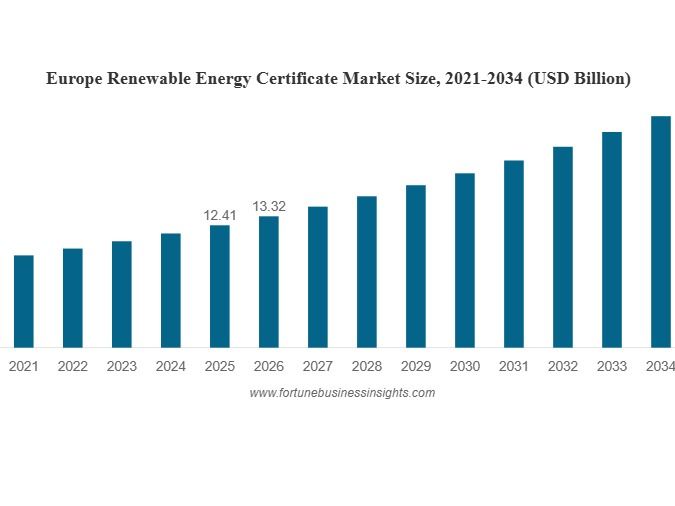 According to Fortune Business Insights, The global renewable energy certificate market size was valued at USD 29.78 billion in 2025 and is projected to grow from USD 32.29 billion in 2026 to USD 65.05 billion by 2034, exhibiting a CAGR of 9.15% during the forecast period.Europe dominated the global market with a share of 41.67% in 2025.
