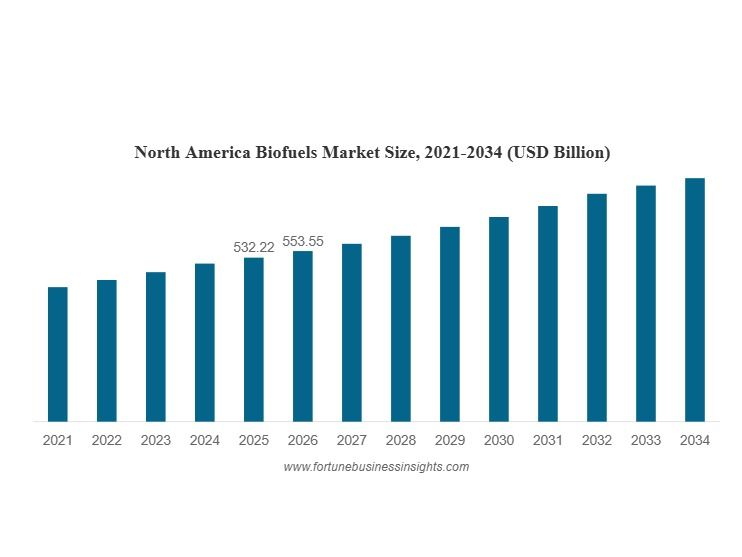 According to Fortune Business Insights, The global biofuels market size was valued at USD 1,392.16 billion in 2025. The market is projected to grow from USD 1,463.34 billion in 2026 to USD 2,371.53 billion by 2034, exhibiting a CAGR of 6.22% during the forecast period. North America dominated the biofuels market with a market share of 38.23% in 2025.