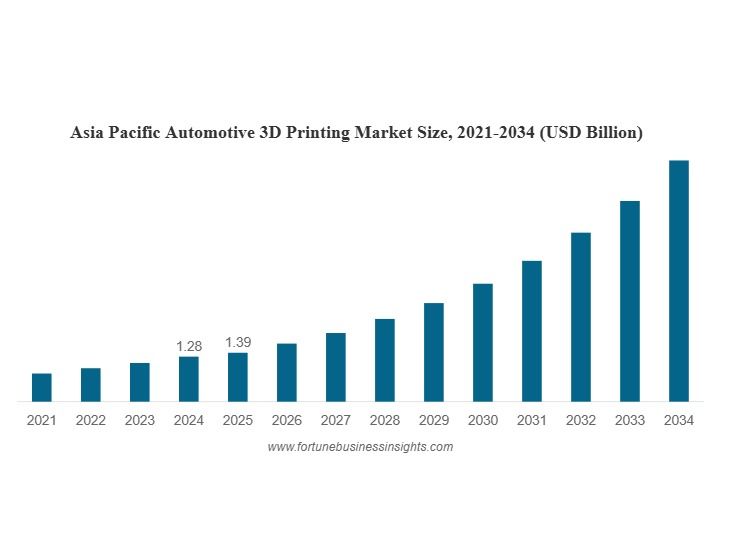 According to Fortune Business Insights, The global automotive 3D printing market size was valued at USD 3.13 billion in 2025. The market is projected to grow from USD 3.71 billion in 2026 to USD 14.66 billion by 2034, exhibiting a CAGR of 18.7% during the forecast period. Asia Pacific dominated the automotive 3d printing market with a market share of 44.41% in 2025.