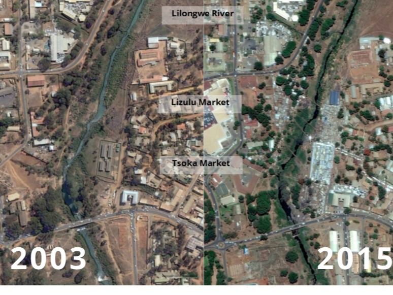 Informal markets in Lilongwe, Malawi, are often located on the banks of the Lilongwe River. Recently, they have significantly increased in size, compromising the health of the Lilongwe River, with associated challenges including encroachment into the river buffer zone, urban agriculture on the river banks and waste dumping alongside and in the river. This challenges are coumpounded by the fact that the Lilongwe River is the primary source of water to the city.